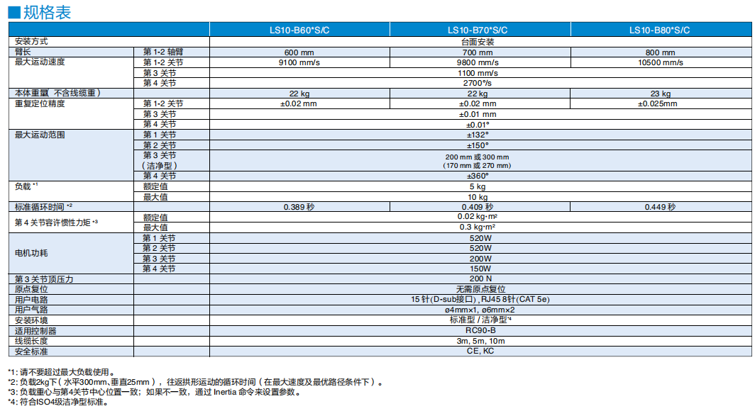 本產(chǎn)品最大負(fù)載10kg,適用于多夾具,多工件,滿足客戶不同需求,更短的循環(huán)時(shí)間,滿足高速作業(yè)需求;全新免電池的馬達(dá)單元,易于維護(hù),節(jié)省了因更換電池帶來的生產(chǎn)時(shí)間成本;可拆卸的本體-控制器線纜,方便搬運(yùn)及組裝;適配全新RC90-B控制器,輸入輸出兼容PNP/NPN兩種接線方式;并可提供ISO4級(jí)潔凈型號(hào)。