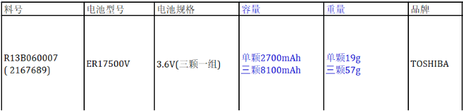 LS系列手臂電池規(guī)格: