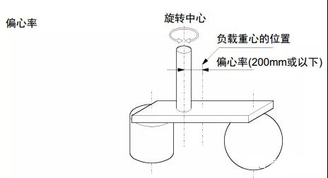 請務必將負載(夾具末端重量+工件重量)的離心率控制在200 mm以下。 LS10-B系列機,其他型號需要查詢對應機器人手冊。器人的設計不對應超過200 mm的離心率。另外,請務必根據(jù)離心率情況設定離心率參數(shù)。如果在離心率參數(shù)中設定小于實際離心率的值,則可能會導致發(fā)生錯誤或沖擊,這不僅不能充分發(fā)揮性能,而且還可能縮短各機構部件的使用壽命或因皮帶齒輪跳動發(fā)生位置間隙的可能性。